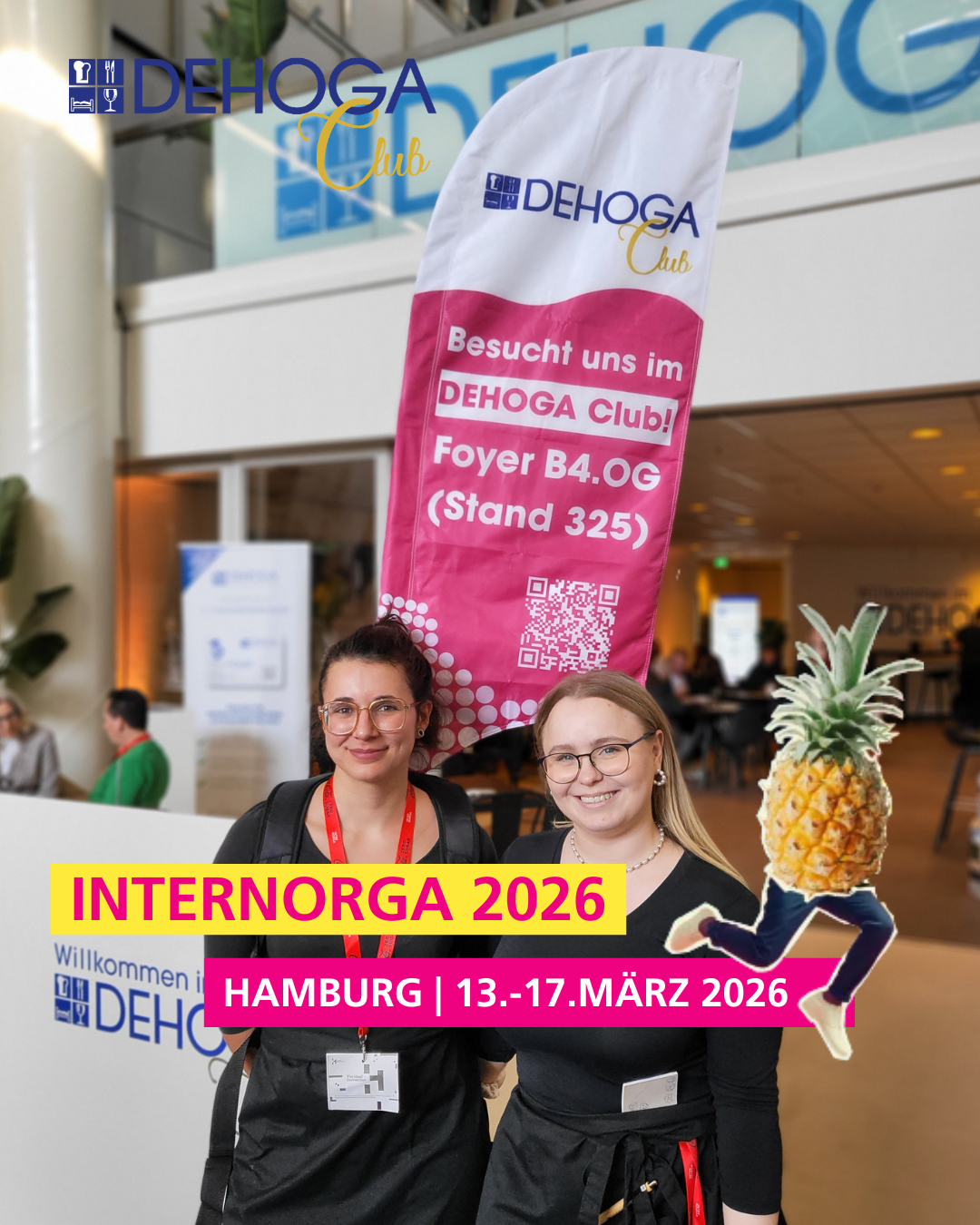 Kommen Sie auch bei uns im DEHOGA Club vorbei: Foyer Halle B4 OG Stand 325.